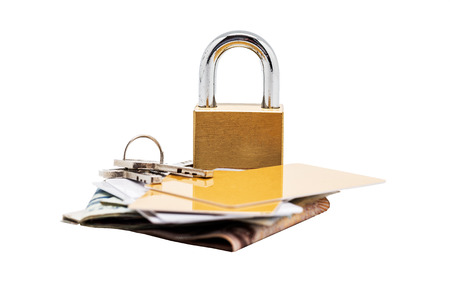 Banknote, Credit card and Padlock , Isolated on white background : Concept for money security