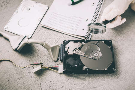 Concept of data recovery, engineer is recovering data from failed hard disk driver.