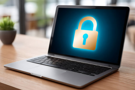 Laptop showing a golden padlock symbol, illustrating data protection and digital privacy