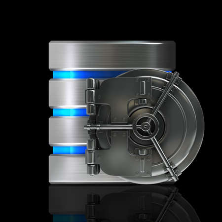 Hard disk and database with bank vault door isolated on black background High resolution 3d