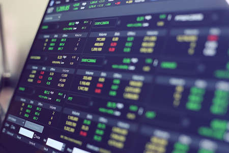 Stock market data.Online trading,investing platform on the computer screen.Blurred background.