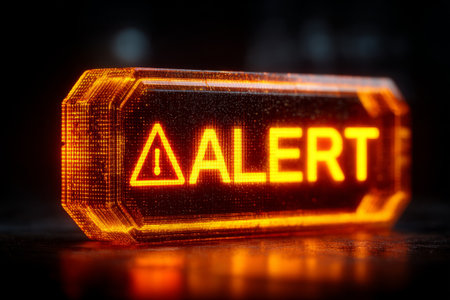 Glowing orange ALERT sign on digital warning screen. Generative AI
