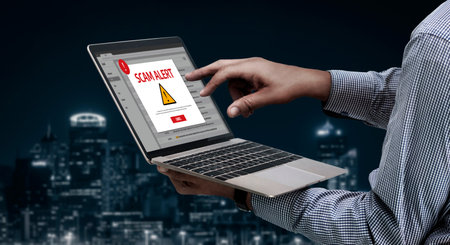 Cyber security software show alert of cyber attack for protection snugly. Danger from virus, phishing and cyber fraud.