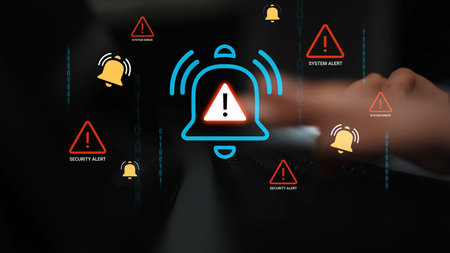 Alert Notification System with Security Icons Representing Warnings and Notifications in Digital Environment for Cybersecurity Awareness.