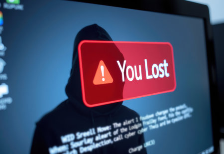 A man figure stares intently at a computer screen displaying a stark red You Lost message amidst lines of code, evoking a sense of tension and potential defeat in a cyber-security scenario.
