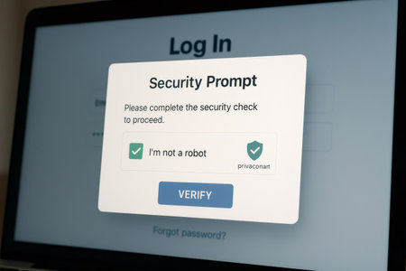 Digital security prompt displayed on a laptop screen, requiring user verification to proceed with login. Emphasizes online privacy and protection
