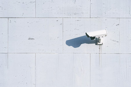 Security camera on the white building wall with copy space