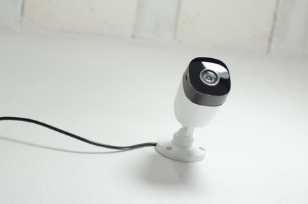 security cctv camera on white wall background