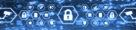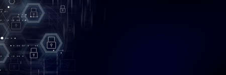 Cyber security abstract technology banner background. Data protection, information privacy