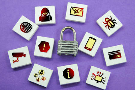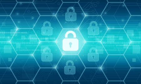 internet digital syber security technology concept for business background. Lock on circuit board