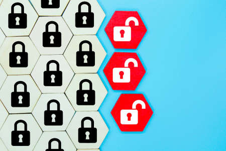 hexagon with lock and unlock icons. safety and security