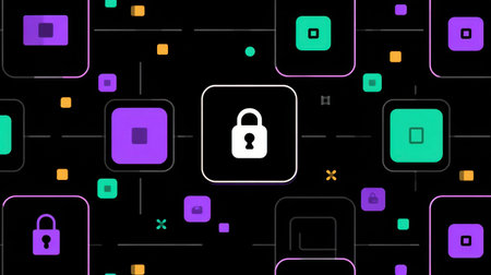 The composition showcases a vibrant digital abstract backdrop that incorporates glowing padlocks and keys, symbolizing security and access.