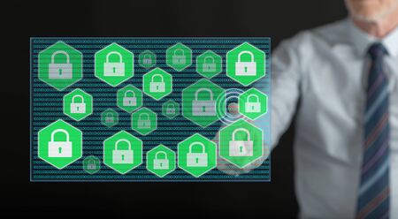 Man touching a data security concept on a touch screen with his finger