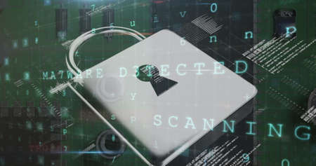Image of multiple words and numbers over a padlock and microprocessor. digital interface global connections concept digitally generated image.
