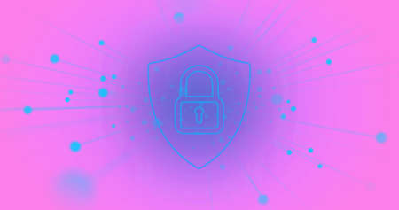 Image of padlock icon and network of connections over pink background. global business, finances and data processing concept digitally generated image.