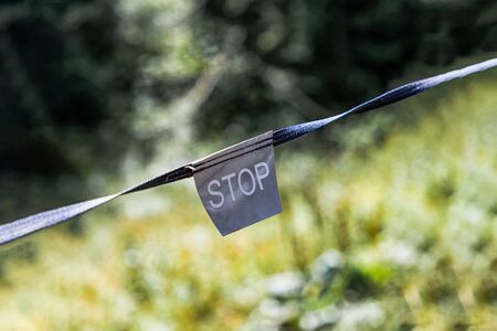 Restricting area strip with written STOP sign