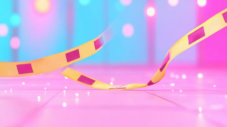 Vibrant Abstract Film Strip on Colorful Background with Bokeh Lights.