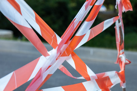 red-and-white ribbon for fencing of the territory