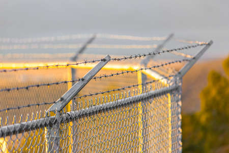 Fence with barbed wire on top used for borders protection.