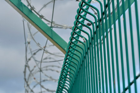 Razor wire fence in daylight view. International boarder between two countries.