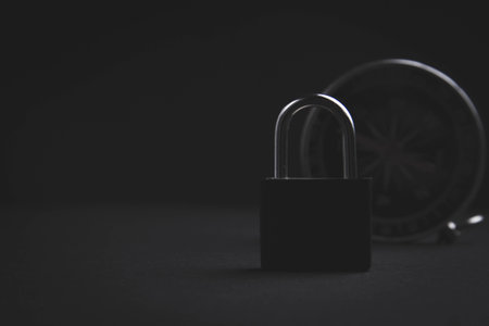 Steel padlock on the black textured background.