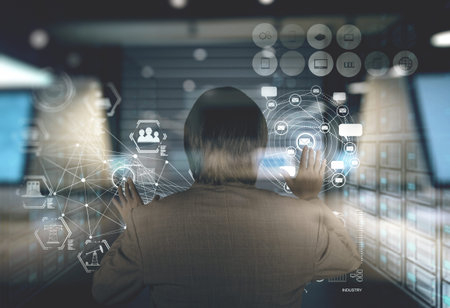 Log in to manage background tasks efficiently and save energy.,A businessman manages an internal computer system.,fix system