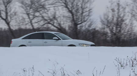 advertising BMW, Moscow, 1.11.2018: demonstration of the white car model, cars in the test track, dust from under the wheels, tracks on the road, race, driving training in a driving school, delivery around the city, taxi