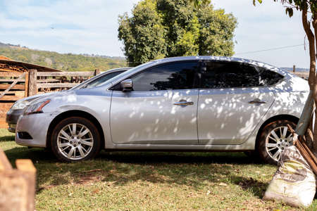 Cassilandia, Mato Grosso do Sul, Brazil - 05 30 2020: Silver sedan car of the nissan sentra model with light crash