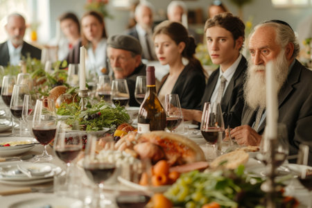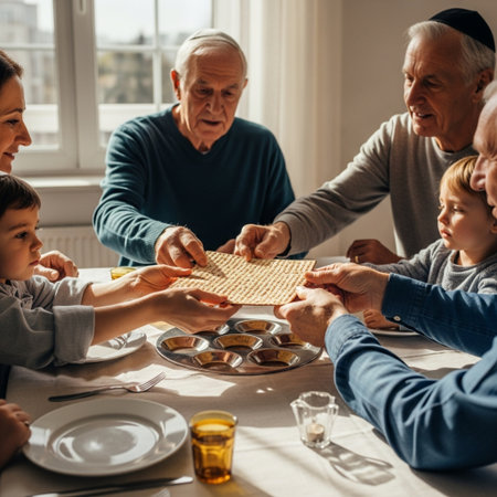 Close-up of family celebrating passover with matzo. concept of tradition, family bonding, cultural celebration, relaxation.