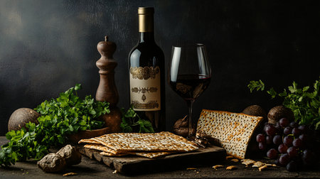 Holiday jewish passover bread matzoh celebration of kosher wine