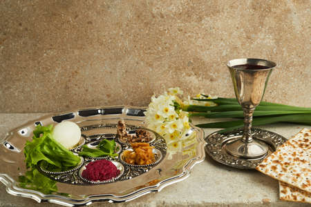 Passover celebration with matzo unleavened bread kiddush cup of wine