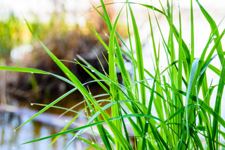 Green grass on water backgound