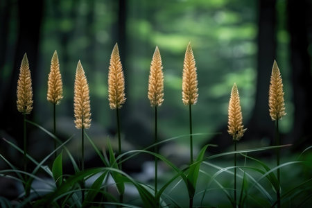 Field grove inflorescence against green background