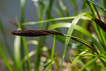 Close up of Typha plant. Nature from Tuchola Forest and Kashubian region in Poland. Copy space, nature background.