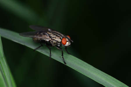 Insect The housefly (Musca domestica) attached to the leavesI