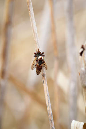 Closeup ofa fly sit on a plant straw