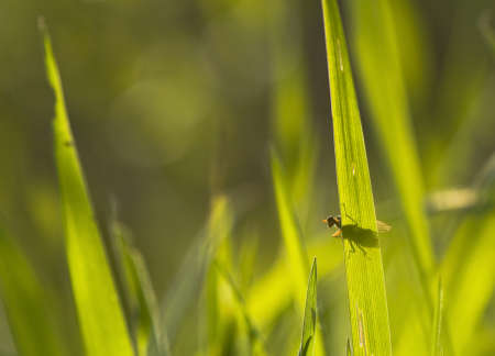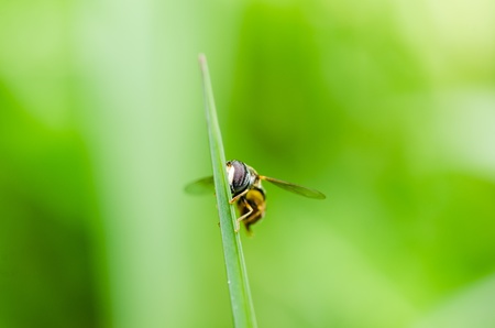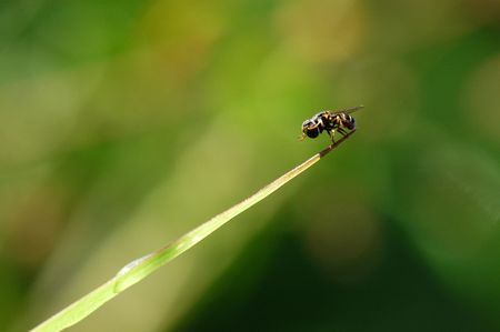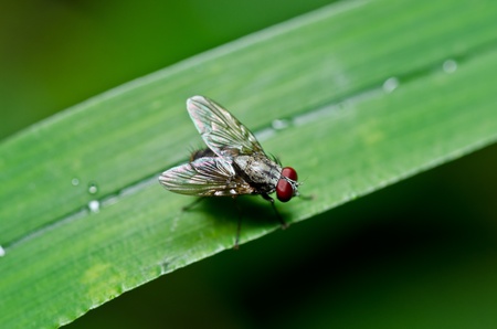 fly on a green grass blade ,image of a