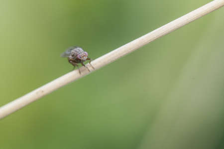 House fly on a green twig, Musca domestica