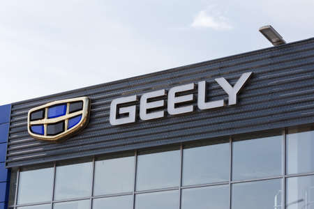 Geely logo on car dealership building at sunny day - Geely is one of the largest Chinese automobile manufacturer