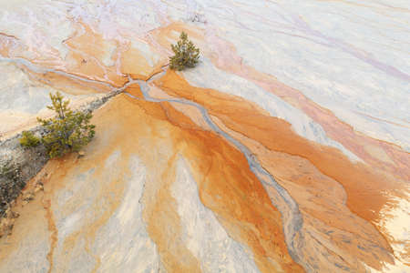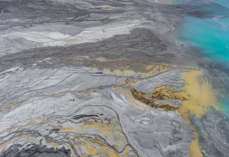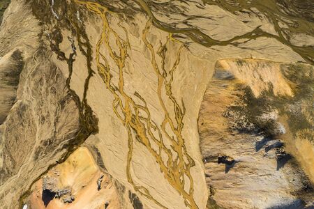 Ecological catastrophe nature pollution concept. Aerial view of abstract natural patterns. Acid mine drainage water background by drone