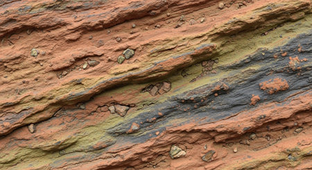 A close-up view of sedimentary rock layers, revealing intricate textures and natural colors shaped by centuries of geological processes.