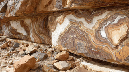 intricate design of a cross-sectioned sedimentary rock, created with generative ai