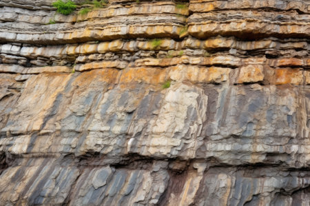 detailed picture of a geological stratigraphy in cliff rock, created with generative ai