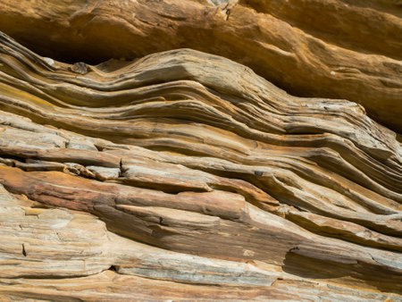 A close-up view of sedimentary rock layers, revealing intricate textures and natural colors shaped by centuries of geological processes.