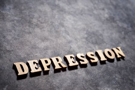 Crisis, word in wooden alphabet letters isolated on purple and yellow background
