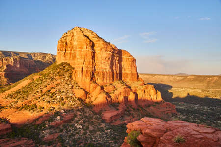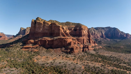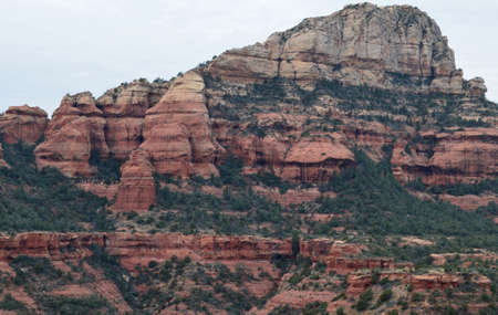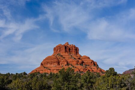Landscape image of the Nancy Rock sandstone formation near Sedona, Arizona. Image was taken near the oak creek canyon on a hill top. This layered rock formation dates back to permian era and is unique