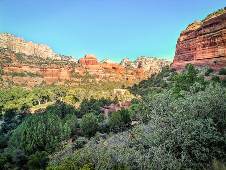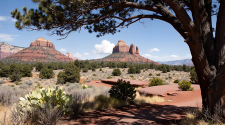 Breathtaking sedona landscape red rock formations and greenery overlooking angel s window