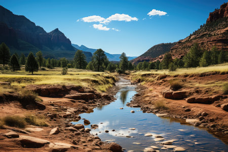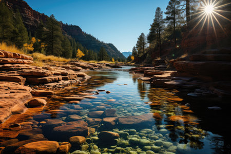 Sedona Trail Serene Gorge with crystal clear waters, generative AI