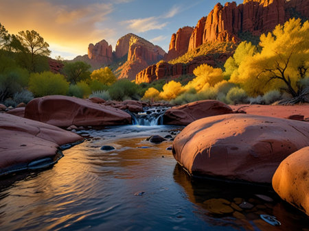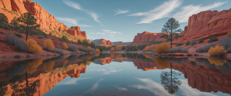 AI Generated. Autumn Lake Reflection in Red Rock Canyon