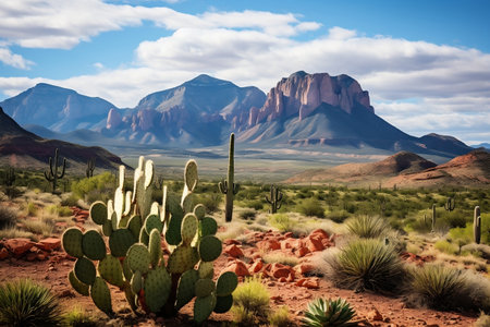 There is a mountain in the desert on a dirt road. Image generated with Generative AI